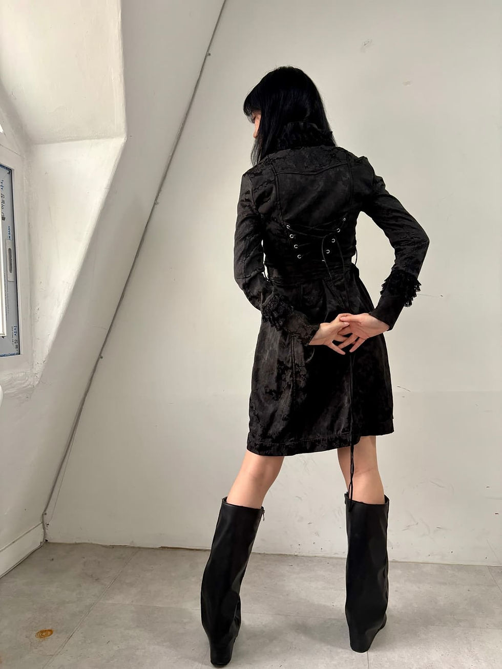 Based on creative and practical mesh materials, the combination of gothic details and oriental genres with eyelets and frills